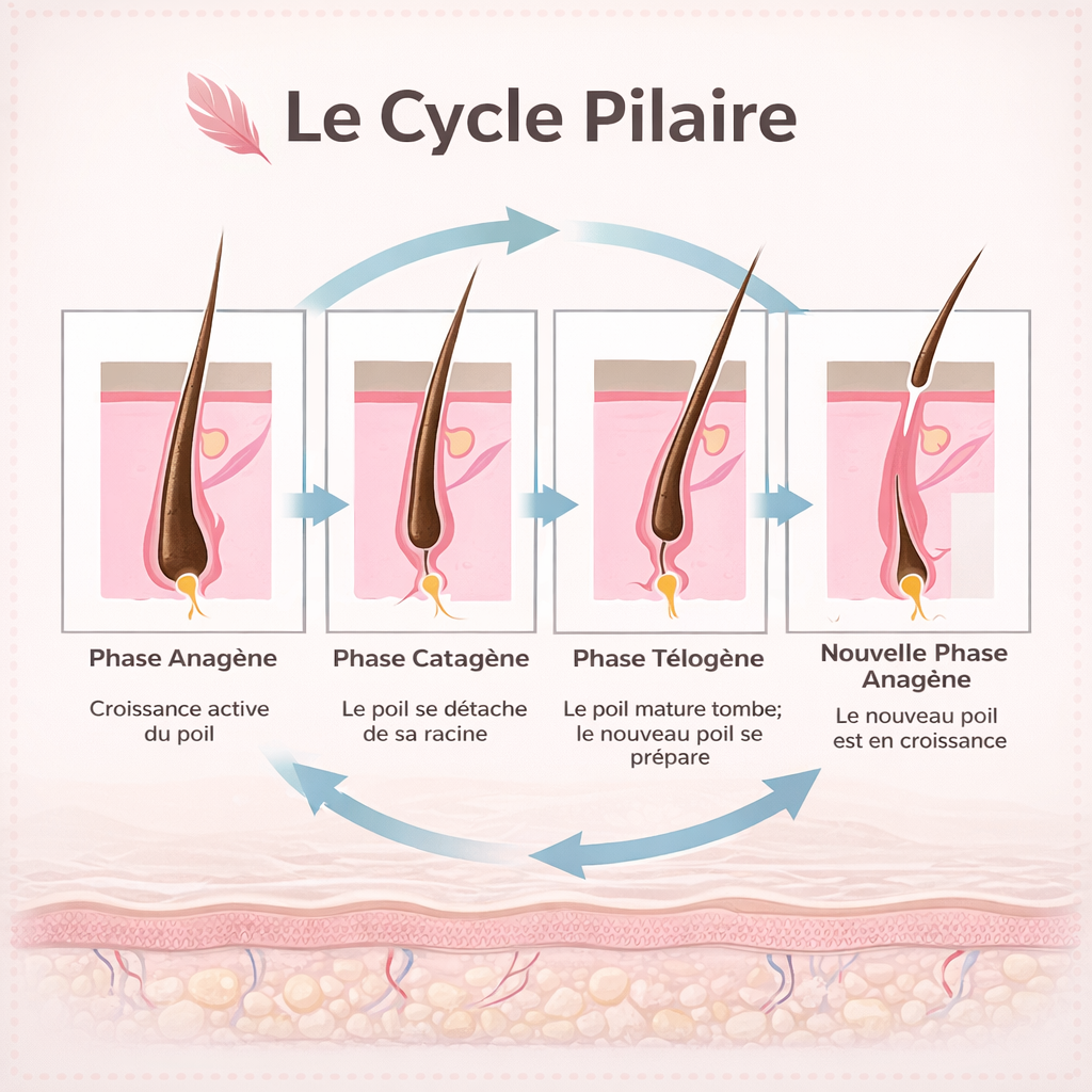 Chaque poil se développe selon un cycle en trois phases :